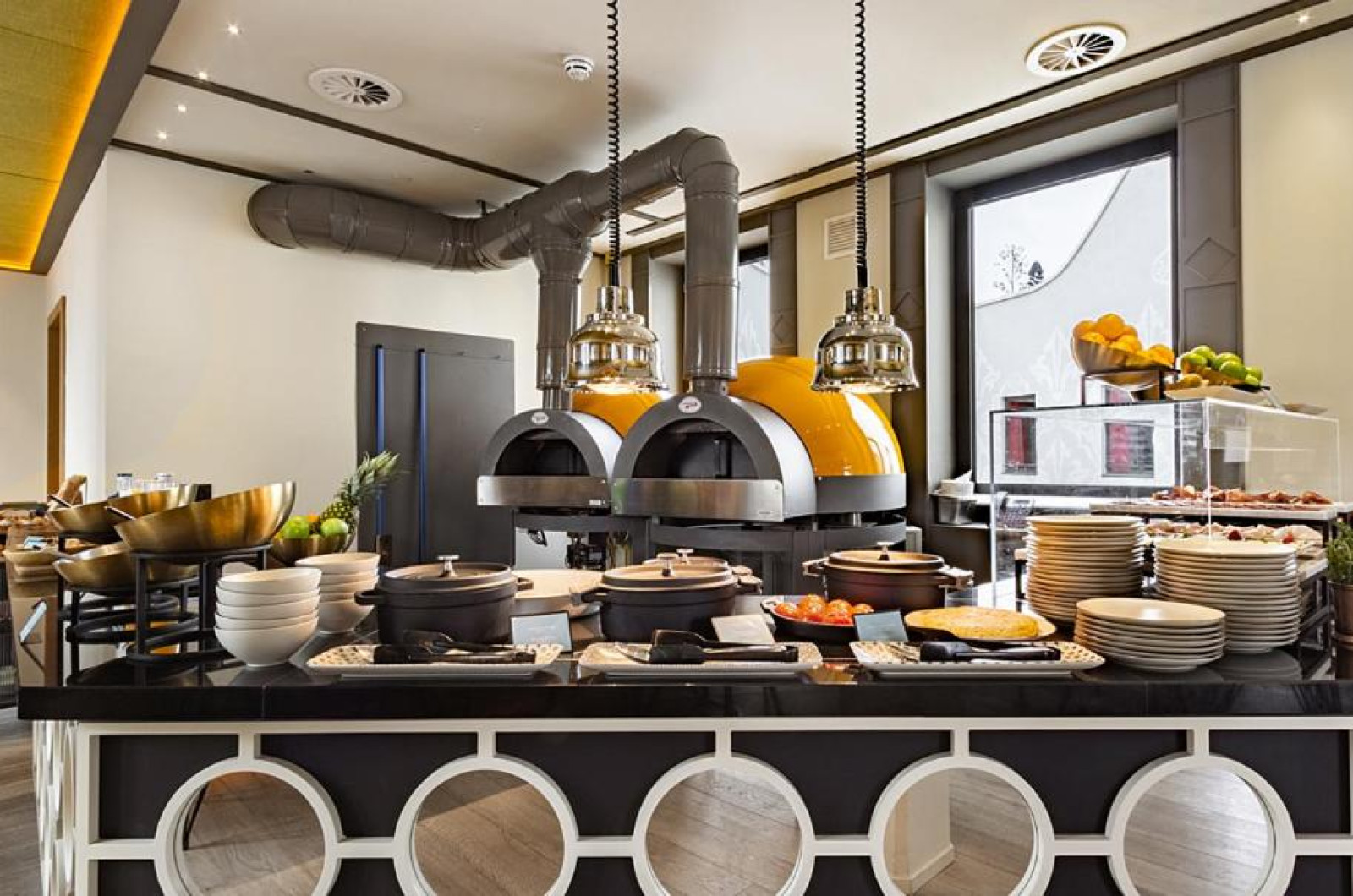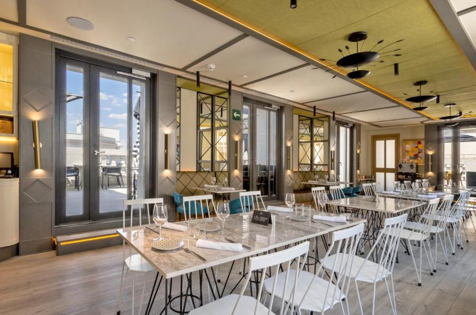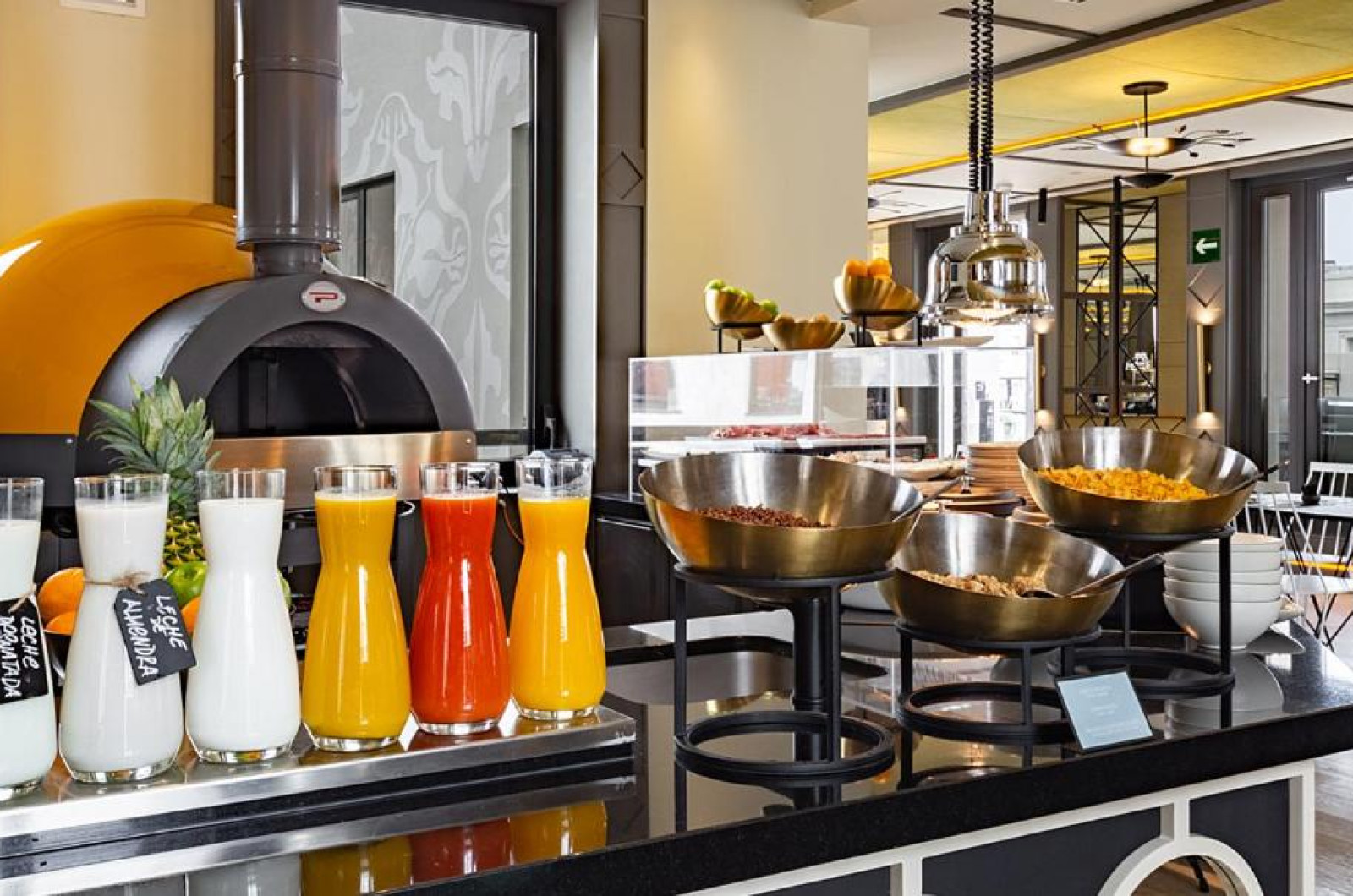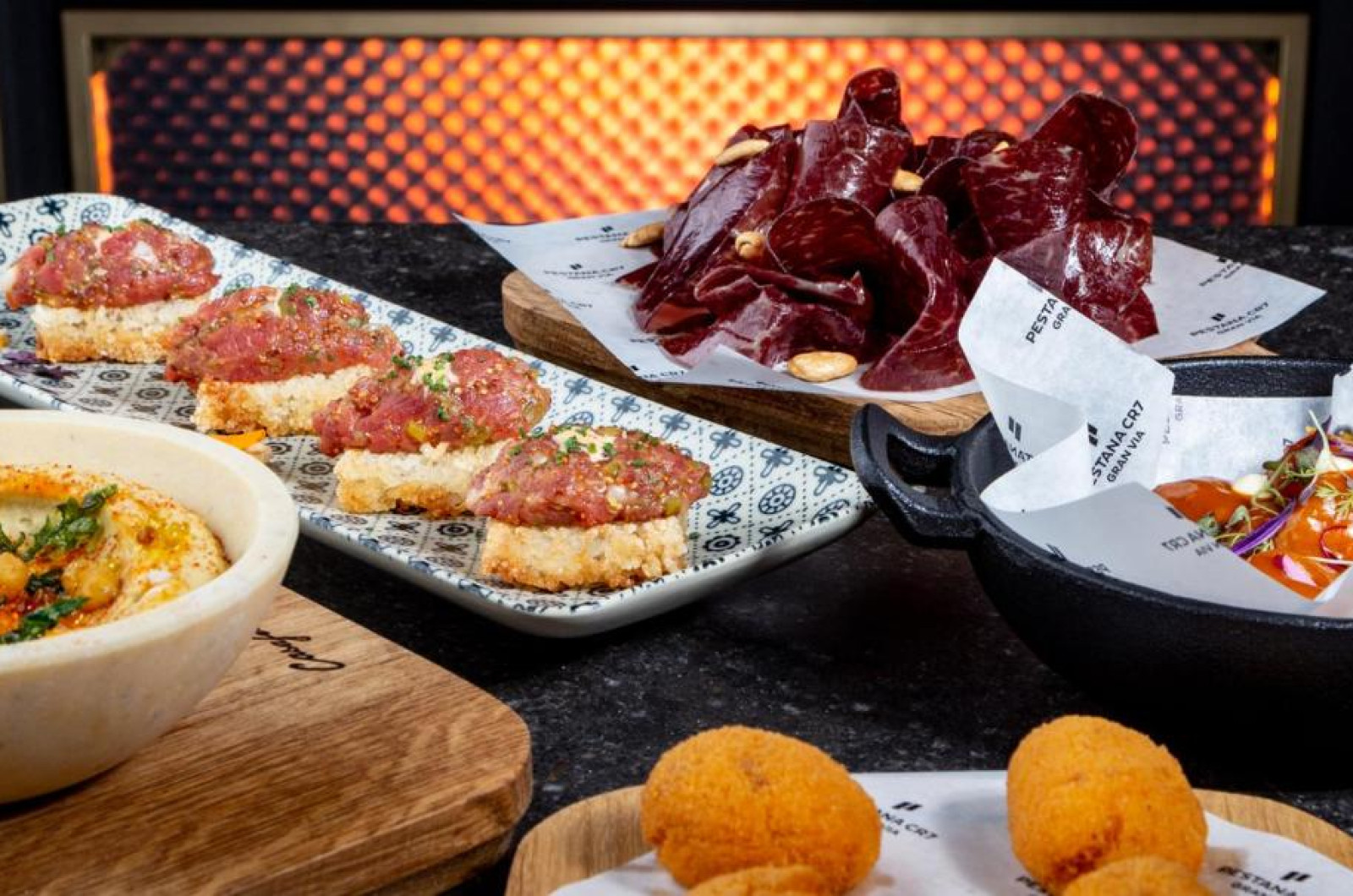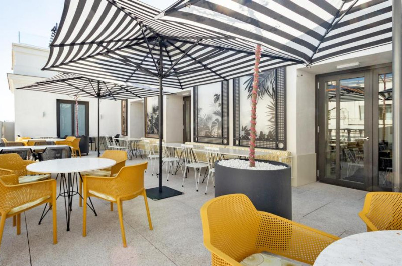 Oaspeții de la Pestana CR7 Gran Vía Madrid pot lua micul dejun pe terasa in aer liber, pot savura sau pizza napoletană autentică sau se pot bucura de un cocktail in timp ce admiră vederea panoramică la Madrid.