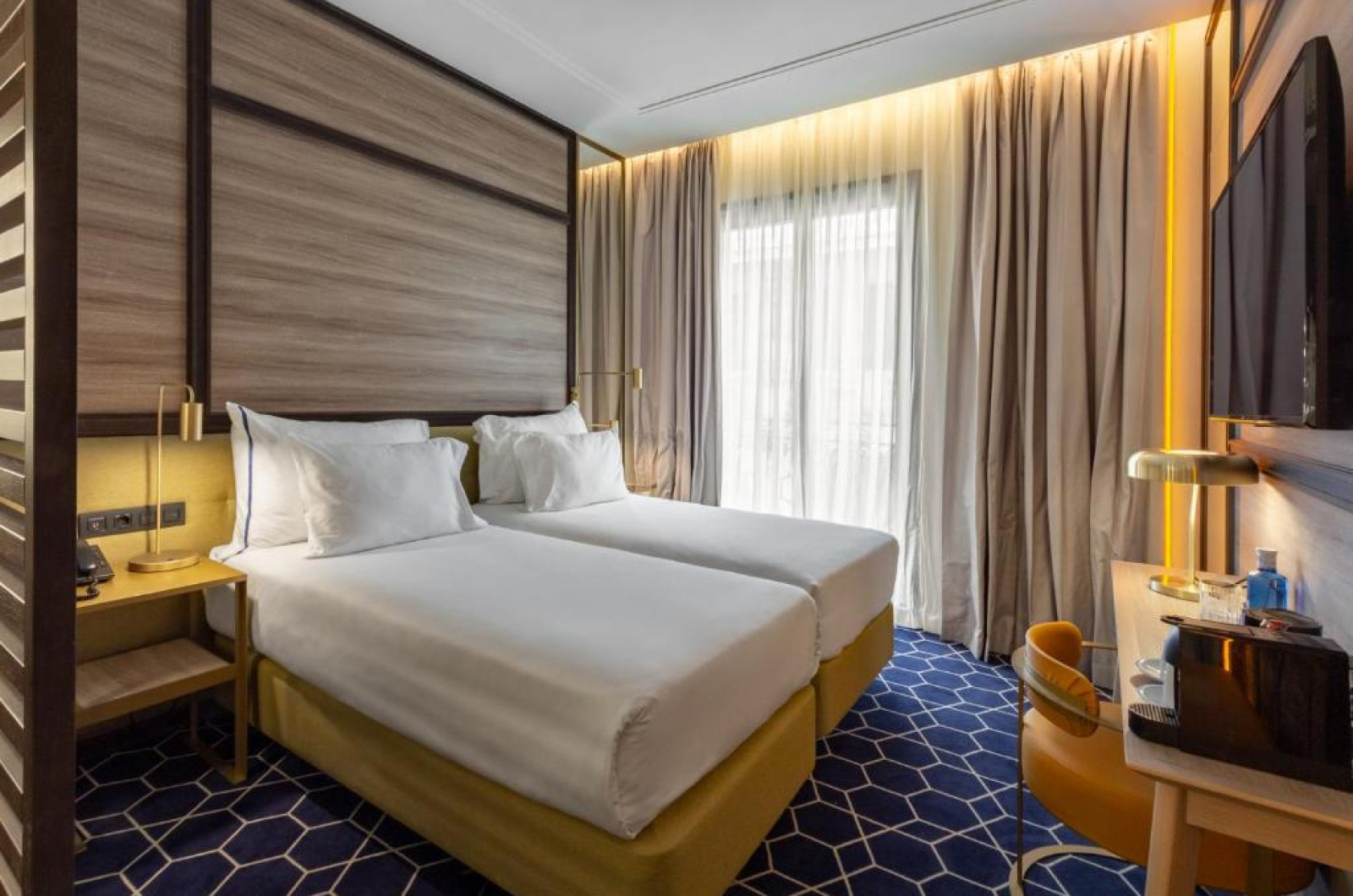Toate camerele sunt bune cu aer, TV cu ecran plat și canale prin satelit, aparat de cafea, birou, duș și uscător de păr. De asemenea, camerele hotelului au dulap și baie privată.