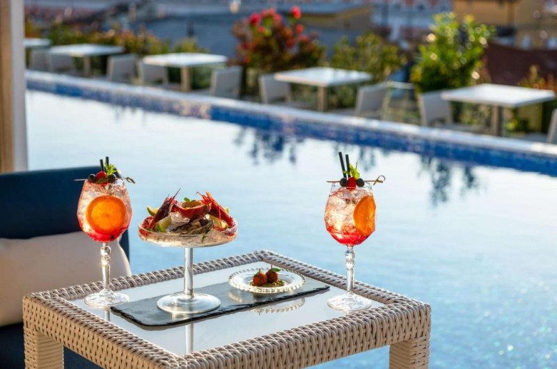 Restaurantul este specializat in bucătăria italiană și internațională, iar oaspeții pot savura diverse preparate culinare pe terasa panoramică.