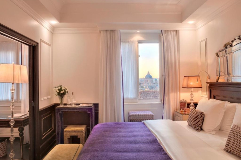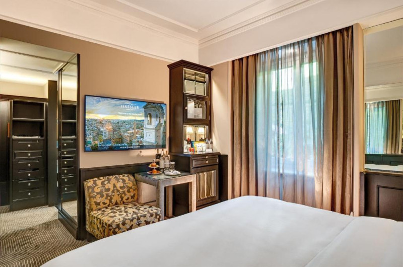 Situat in partea superioară a Treptelor Spaniole, Hassler Roma este unul dintre cele mai renumite hoteluri ale orașului. Acesta oferă camere și suite elegante, cu acces gratuit la internet WiFi de mare viteză și facilități de wellness gratuite, cum ar fi saună, hamam și sală de sport. Restaurantul și sala de sport au vedere frumoasă la orașul Roma.
