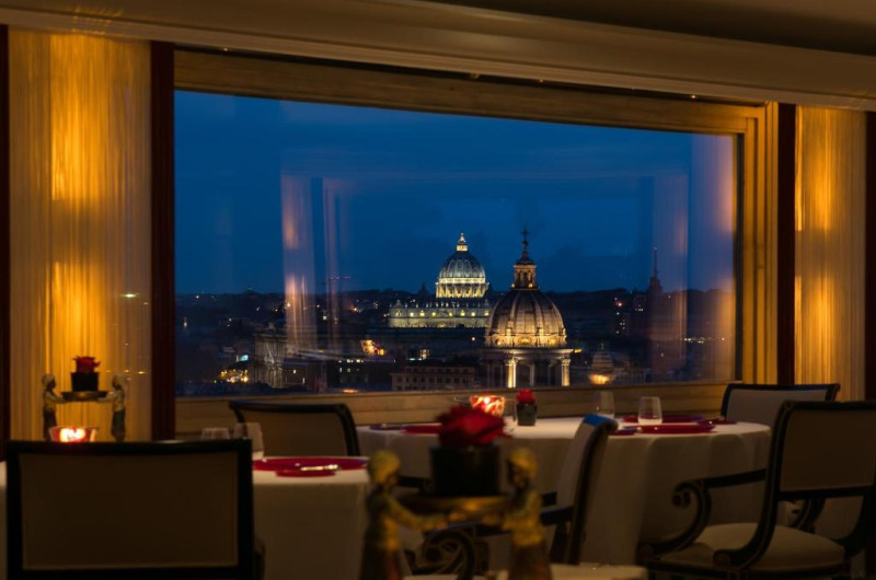 Hassler pune la dispoziție restaurantul Imàgo de la etajul 6, premiat cu stea Michelin, elegantul restaurant Salone Eva și restaurantul Palm Court cu ziduri vechi din piatră. Puteți să savurați mancăruri din bucătăria italiană clasică și specialități internaționale.