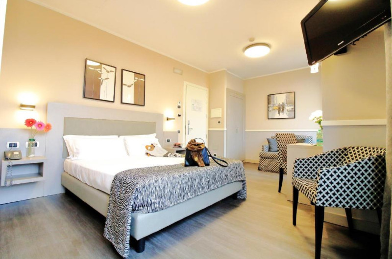 Camerele de la Noba Hotel e Residenze au aer condiționat, aparat de cafea, precum și o baie de design cu duș și uscător de păr. Cele mai multe camere au podea moale cu mochetă, altele au parchet.