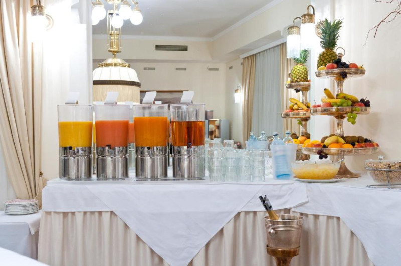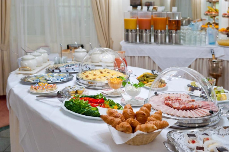 In fiecare dimineață, oaspeții Hotelului Johann Strauss pot savura un mic dejun tip bufet.