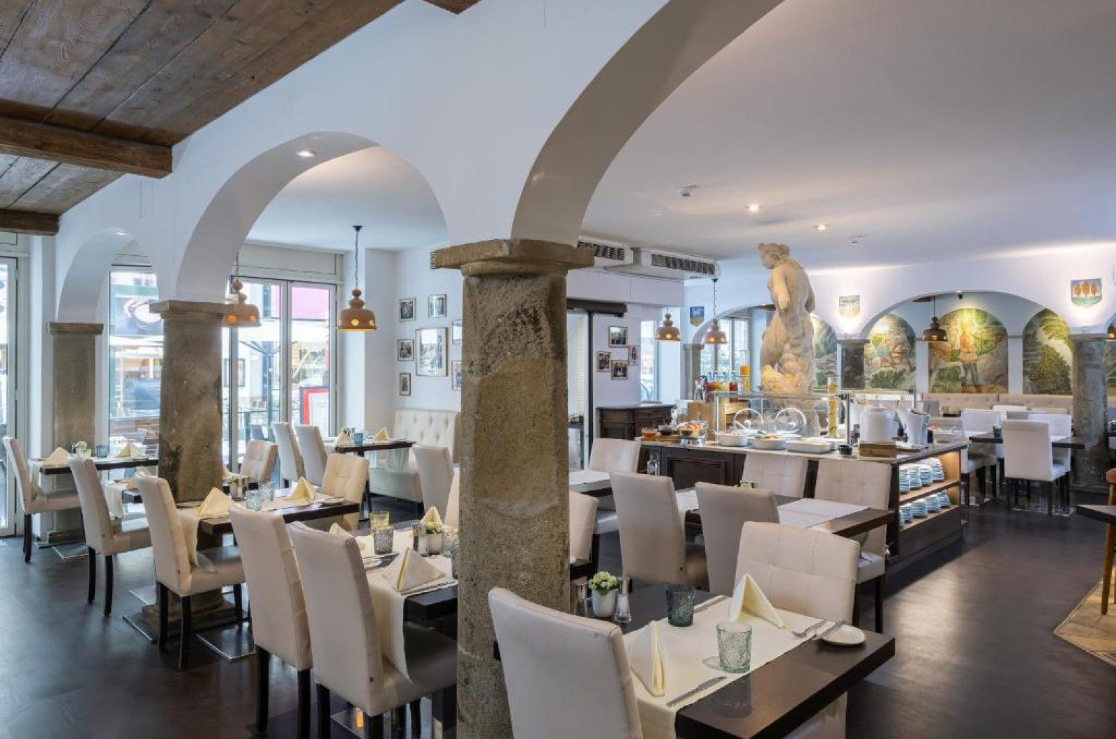 Oaspeții pot savura preparate italiene gourmet și vinuri la Firenze Enoteca, care se află la parter, și la Settimo Cielo, care se află la ultimul etaj și oferă vedere panoramică la orașul Viena.