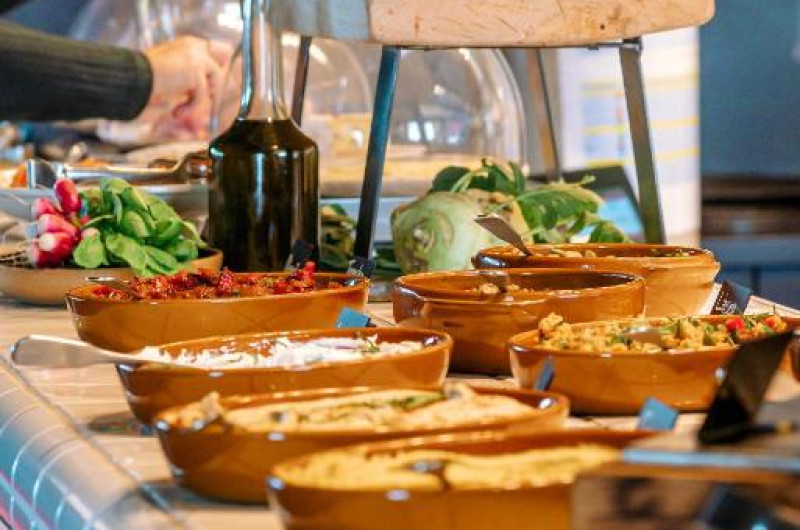 Un mic dejun tip bufet este disponibil zilnic de luni pană vineri, intre orele 07:00 - 11:00, iar sambăta și duminica, intre orele 08:00 - 11:00, la „Restaurant NENI am Prater”. Proprietatea are și un bar.