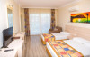 Camerele luminoase de la Gardenia Beach sunt dotate cu gresie sau parchet, aer condiționat, Tv și seif. În camere există baie cu cadă sau duș prevăzută cu foehn. Camerele au balcon cu masă și scaune unde pot fi petrecute momente de relaxare. Oaspeții au acces gratuit la serviciul Wi-fi în camere. Curățenia in cameră se face zilnic. Proprietatea oferă camere pentru familie cu o suprafață mai mare și un număr mai mare de paturi față de cele standard.