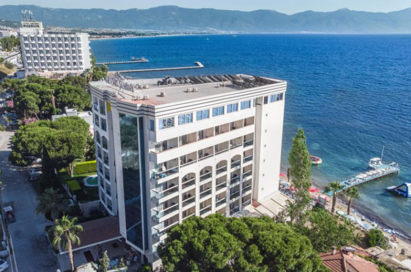 Hotelul se bucura de o locatie ideala, pe malul marii si la 2.5 km de portul de agrement din Kusadasi. Cel mai apropiat aeroport este cel din Izmir, situat la 80 de km de hotel.