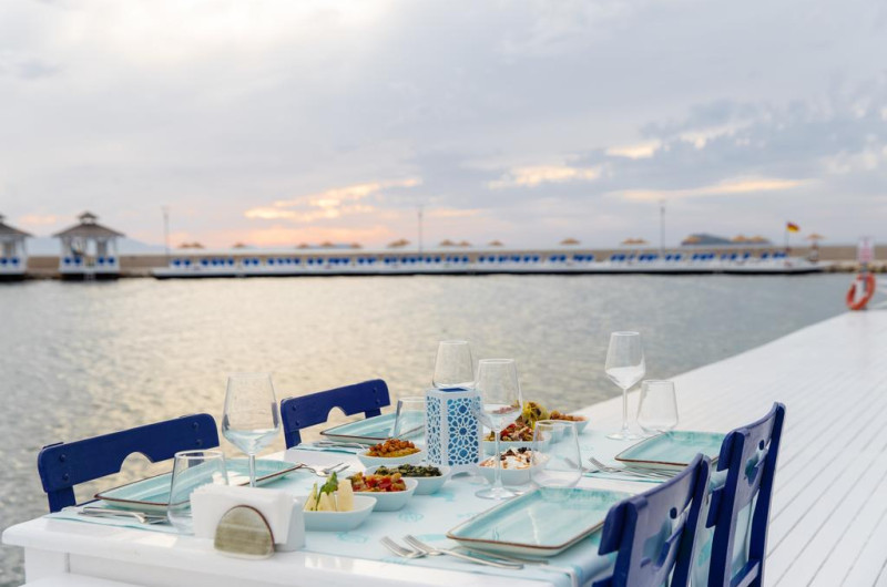 La La Blanche Resort & Spa oaspeții au la dispoziție 5 restaurante unde pot savura mâncăruri delicioase, în stil bufet sau à la carte. Preparate din bucătăria internațională, mediteraneeană și italiană propun mâncăruri pentru gusturi diverse.. Masa poate fi servită atât în interior, cît si în aer liber, pe terasă, în funcție de vreme. 5 baruri, dintre care unul la piscină și unul pe plajă, sunt disponibile cu o ofertă variată de băuturi răcoritoare și alcoolice. Pentru cei cu anumite nevoi de nutriție, La Blanche Resort & Spa oferă meniuri pentru diete speciale.