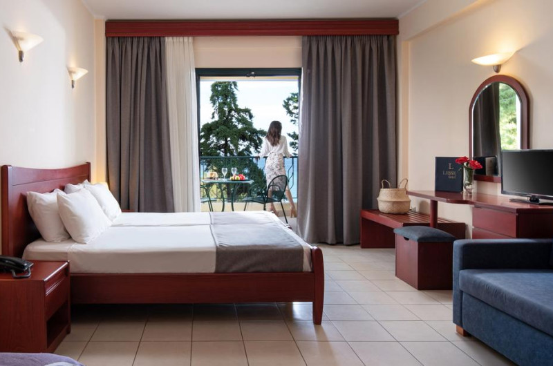 Camerele confortabile de la Lesse Hotel au pardoseală de gresie/ marmură, aer condiționat, Tv cu canale prin satelit și seif. Unele camere au balcon cu vedere la mare sau la piscină. Fiecare cameră oferă cană-fierbător și mașină pentru prepare cafea sau ceai. Oaspeții pot solicita serviciul de room service pentru a servi masa sau diverse băuturi. În camere există baie cu cadă sau duș ce are în dotare foehn și articole de toaletă gratuite. Curățenia in cameră se face zilnic. Toate camerele spațioase de la Lesse Hotel au zonă de relaxare cu canapea, ceea ce oferă un plus de confort. Fiecare unitate de cazare include o chicinetă utilată cu frigider, plită de gătit și ustensile de bucătărie. De asemenea, este disponibilă o zonă de luat masa. Proprietatea oferă camere pentru familie cu o suprafață mai mare și un număr mai mare de paturi față de cele standard. Se pot rezerva de asemenea camere pentru nefumători.