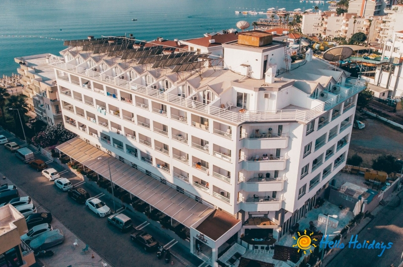 Hotelul este localizat la distanta de 20 de metri de mare, in centrul orasului Marmaris, la 2 minute de Atlantis Water Park si Aqua Dream Park. Aeroportul Dalaman se afla la distanta de 95 de km.