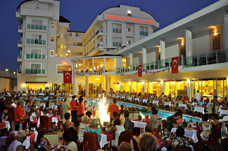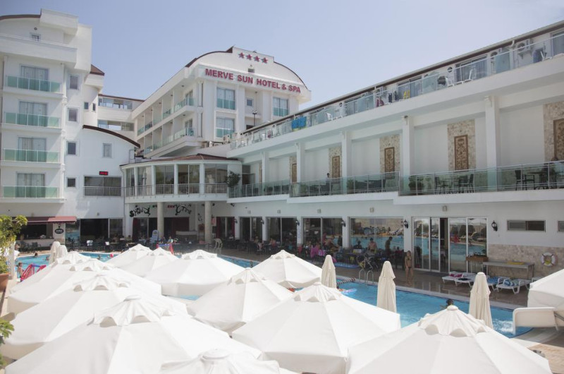 Această proprietate de 4 stele se află în Side (Antalya), la o distanță de 350 m de plaja Kumkoy și oferă piscină înterioară, piscină în aer liber cu terasă și umbrele de soare, precum și o zonă de plajă privată cu șezlonguri și umbrele de soare. Facilitățile de la Merve Sun Hotel & Spa includ și sală de fitness. Pentru petrecerea timpului liber oaspeții au la dispoziție activități de agrement pe timpul zilei și programe de divertisment seara. Proprietatea are, de asemenea, servicii de recepție cu program non - stop și închirieri auto. Se oferă acces gratuit la internet Wi-fi în spațiile publice. Parcarea este disponibilă la proprietate gratuit.