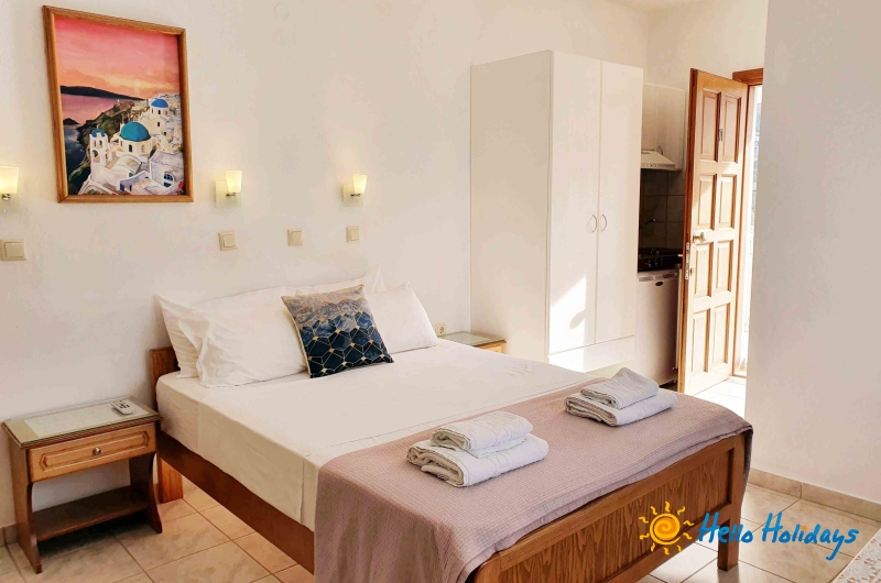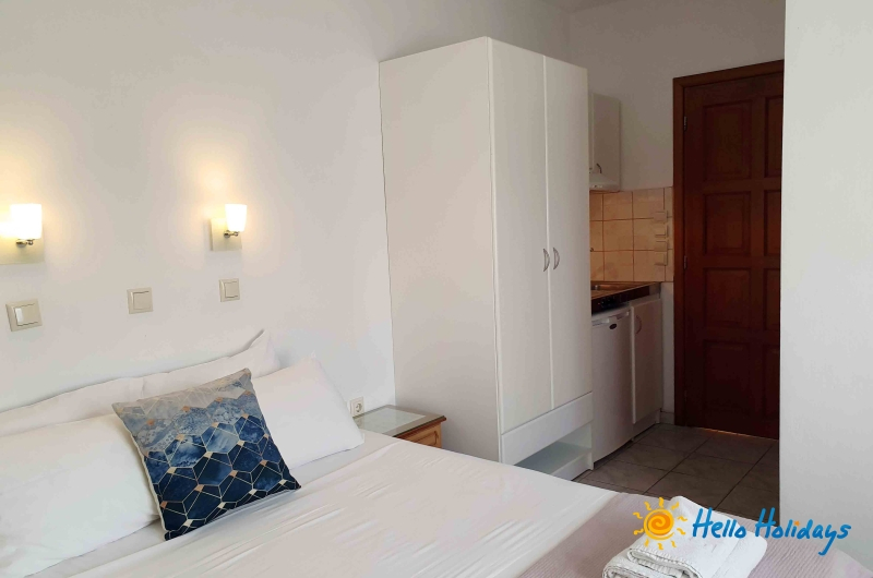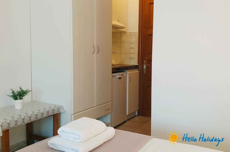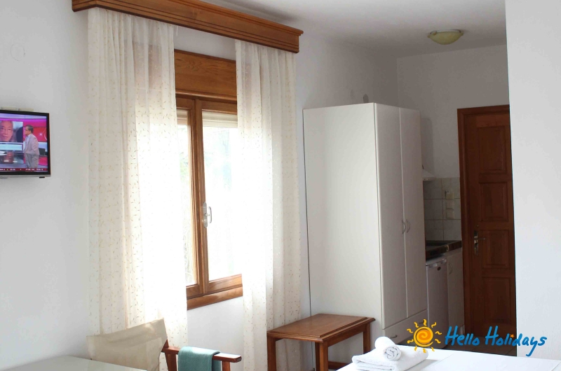 Studio Mesimvria, modern construita in anul 2010, isi intampina turistii cu o ambianta specific greceasca, oferind liniste si confort oaspetilor sai. Unitatea de cazare este o afacere de familie si asigura pentru turisti o gazda intotdeauna prezenta si servicii de foarte buna calitate.Facilitati studio
