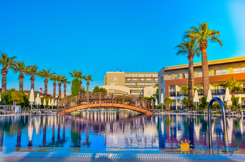 Palm Wings Ephesus este situat la 55 km de aeroportul orasului Izmir, la 8 km de centrul statiunii Kusadasi și la 7 km de localitatea Selcuk, chiar pe malul marii, pe plaja este certificată cu "Blue Flag". Orașul antic Efes se află la o distanță de 4 km de hotel.