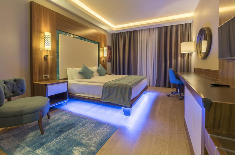 Fiecare cameră dispune de minibar și cană-fierbător. Oaspeții pot solicita serviciul de room service pentru a servi masa sau diverse băuturi. Unele camere au balcon cu vedere la mare sau la piscină. În camere există baie cu cadă sau duș ce are în dotare foehn și articole de toaletă gratuite. Oaspeții au acces gratuit la serviciul Wi-fi în camere. Curățenia in cameră se face zilnic. Toate camerele spațioase de la Ramada Resort Kusadasi & Golf au zonă de relaxare cu canapea, ceea ce oferă un plus de confort. Proprietatea oferă camere pentru familie cu o suprafață mai mare și un număr mai mare de paturi față de cele standard. Se pot rezerva de asemenea camere pentru nefumători.