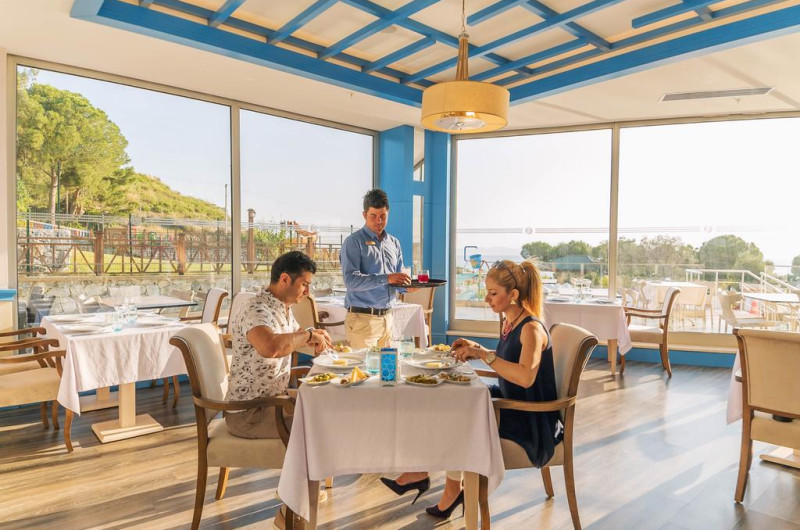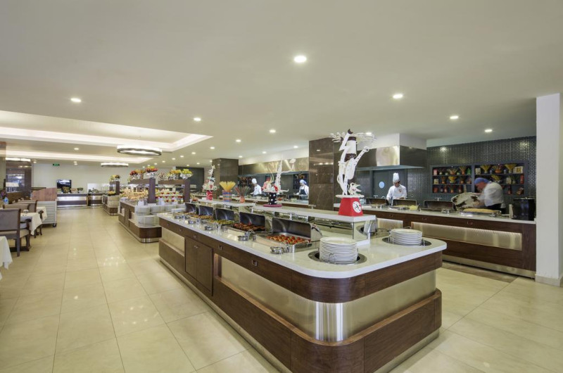 La Ramada Resort Kusadasi & Golf oaspeții au la dispoziție un restaurant care servește mâncare în stil bufet și à la carte. Preparate din bucătăria internațională și turcească așteaptă să fie degustate în fiecare zi la micul dejun, prânz și cină. Masa poate fi servită atât în interior, cît si în aer liber, pe terasă, în funcție de vreme. Oaspeţii pot avea diverse băuturi răcoritoare sau alcoolice la bar. În cadrul proprietății există și un snack bar care servește băuturi și gustări. Pentru cei cu anumite nevoi de nutriție, Ramada Resort Kusadasi & Golf oferă meniuri pentru diete speciale.