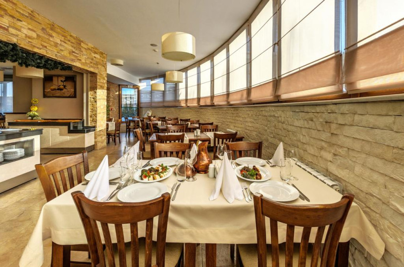 La Regnum Bansko Apart Hotel & Spa oaspeții au la dispoziție un restaurant care servește mâncare în stil bufet și à la carte. Preparate din bucătăria internațională și turcească așteaptă să fie degustate în fiecare zi la micul dejun, prânz și cină. Masa poate fi servită atât în interior, cît si în aer liber, pe terasă, în funcție de vreme. Oaspeţii pot avea diverse băuturi răcoritoare sau alcoolice la bar. În cadrul proprietății există și un snack bar care servește băuturi și gustări. Pentru cei cu anumite nevoi de nutriție, Regnum Bansko Apart Hotel & Spa oferă meniuri pentru diete speciale.