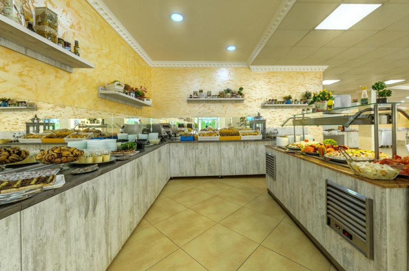 Riva pune la dispoziția oaspeților un restaurant care servește mâncare în stil bufet. Masa poate fi servită atât în interior, cît si în aer liber, pe terasă, în funcție de vreme. 2 baruri, dintre care unul la piscină, sunt disponibile cu o ofertă variată de băuturi răcoritoare și alcoolice. În cadrul proprietății există și un snack bar care servește băuturi și gustări. Pentru cei cu anumite nevoi de nutriție, Riva oferă meniuri pentru diete speciale.