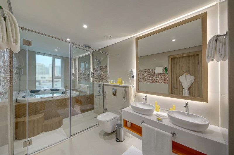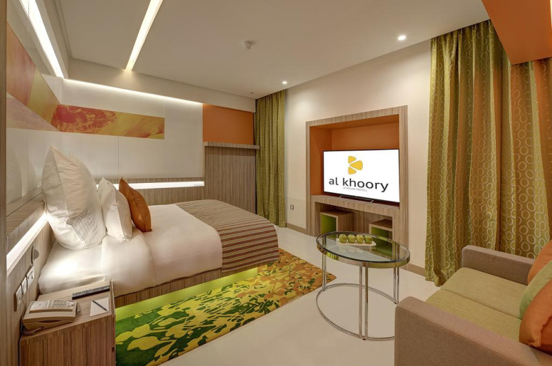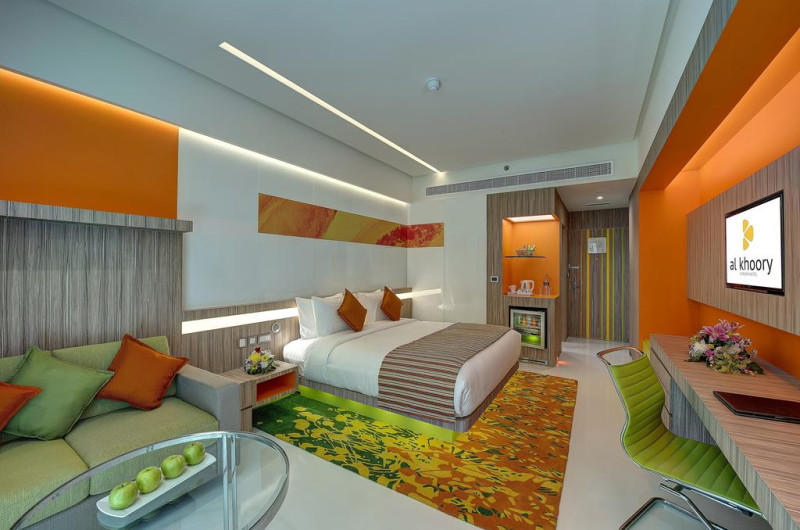 Fiecare cameră dispune de un aparat pentru preparare cafea sau ceai, cană-fierbător și minibar. Oaspeții pot solicita serviciul de room service pentru a servi masa sau diverse băuturi. În camere există baie cu cadă sau duș ce are în dotare foehn și articole de toaletă gratuite. Oaspeții au acces gratuit la serviciul Wi-fi în camere. Curățenia in cameră se face zilnic. Toate camerele spațioase de la Al Khoory Atrium Hotel au zonă de relaxare cu canapea, ceea ce oferă un plus de confort. Fiecare unitate de cazare are frigider. De asemenea, este disponibilă o zonă de luat masa. Proprietatea oferă camere pentru familie cu o suprafață mai mare și un număr mai mare de paturi față de cele standard. Se pot rezerva de asemenea camere pentru nefumători.