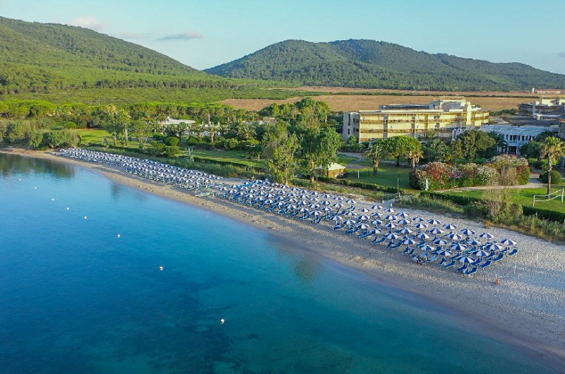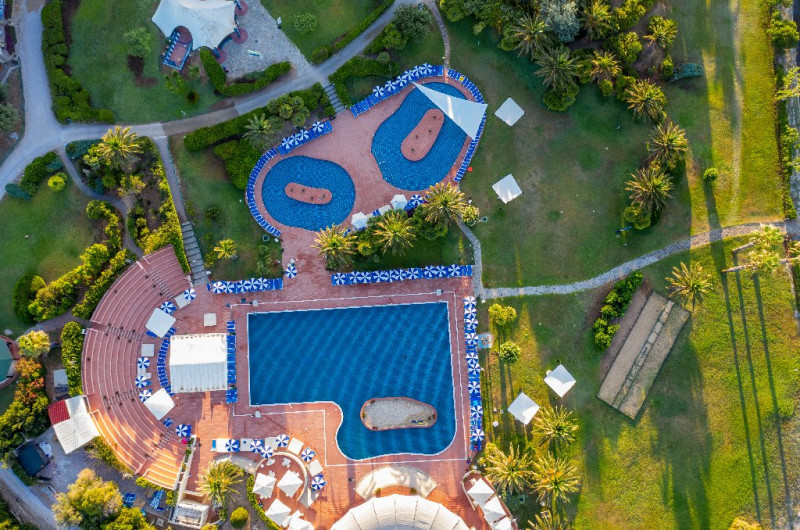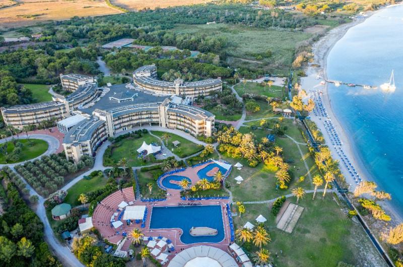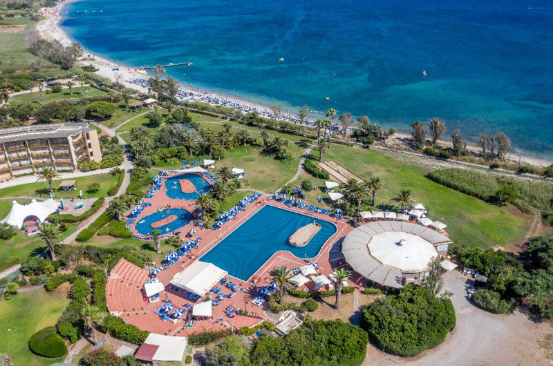 Descriere: Hotelul recomandat familiilor cu copii a fost renovat in anul 2015 si este situat pe coasta de vest a Sardiniei, intr-o zona verde in parcul natural Porto Conte. Hotelul are propria sa plaja, iar  orasul Alghero cu toate atractiile sale se afla la doar 20 min de mers cu masina (hotelul pune la dispozitia clientilor un shuttle bus pentru Alghero, cu plata suplimentara). Hotelul se remarca pentru piscina frumoasa si zonele exterioare cu verdeata, palmieri si arbori.