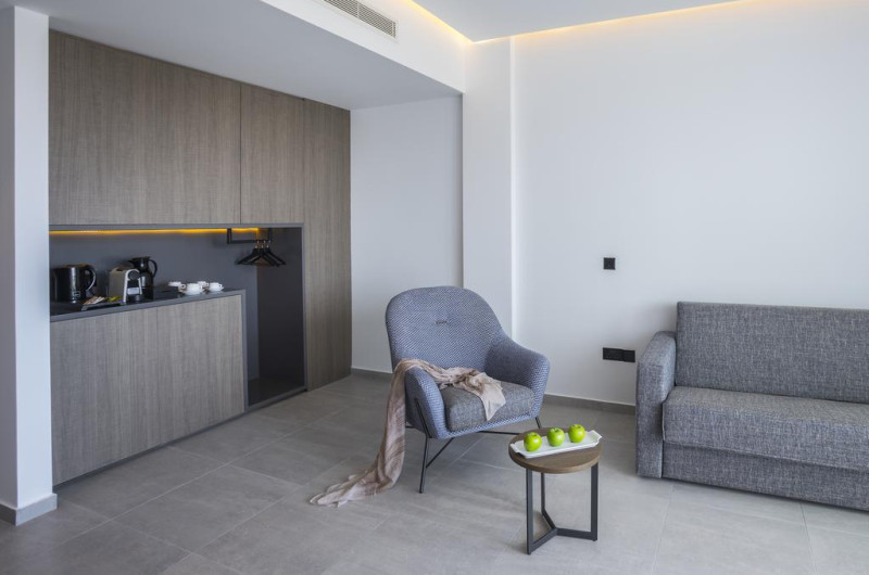 Cavo Maris Beach are acces la o plajă publică. Pe plajă există șezlonguri și umbrele de plajă.
