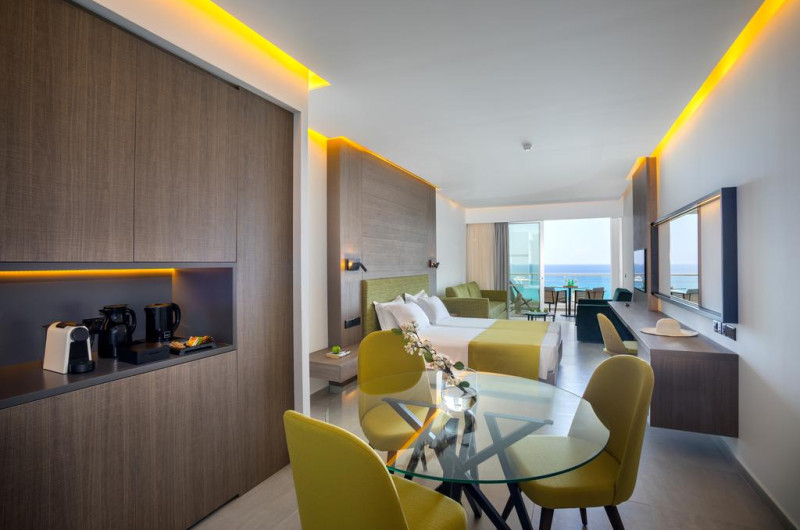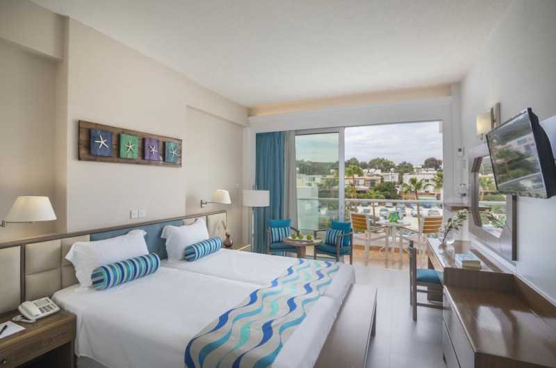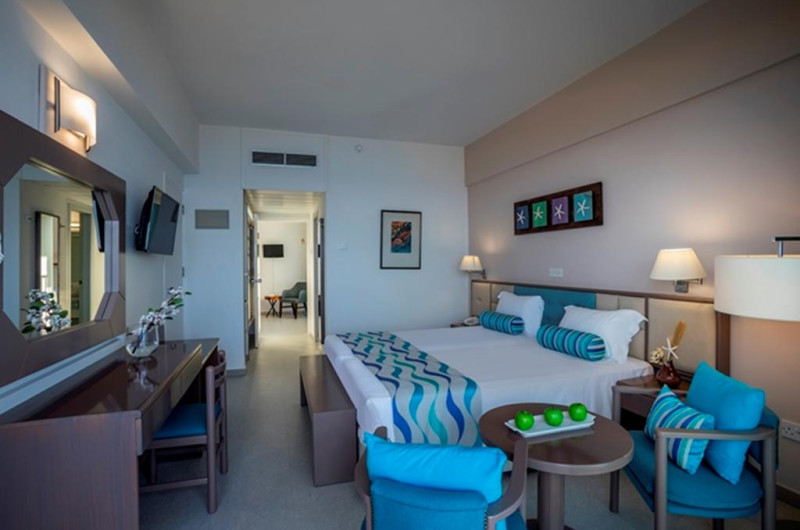 Sunt disponibile 277 camere. Camerele de la Cavo Maris Beach sunt dotate cu aer condiționat, Tv cu canale prin satelit și seif. Fiecare cameră dispune de un aparat pentru preparare cafea sau ceai, cană-fierbător și minibar. Oaspeții pot solicita serviciul de room service pentru a servi masa sau diverse băuturi. Oaspeții au acces gratuit la serviciul Wi-fi în camere. În camere există baie cu cadă sau duș ce are în dotare foehn și articole de toaletă gratuite. Unele camere au balcon cu vedere la mare. Curățenia in cameră se face zilnic. Proprietatea oferă camere pentru familie cu o suprafață mai mare și un număr mai mare de paturi față de cele standard.