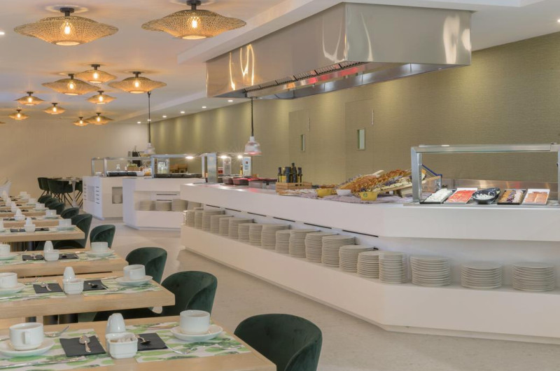 La Hm Ayron Park oaspeții au la dispoziție un restaurant care servește mâncare în stil bufet. Preparate din bucătăria locală și internațională așteaptă să fie degustate în fiecare zi la micul dejun, prânz și cină. Masa poate fi servită atât în interior, cît si în aer liber, pe terasă, în funcție de vreme. 2 baruri, dintre care unul la piscină, sunt disponibile cu o ofertă variată de băuturi răcoritoare și alcoolice. În cadrul proprietății există și un snack bar care servește băuturi și gustări.