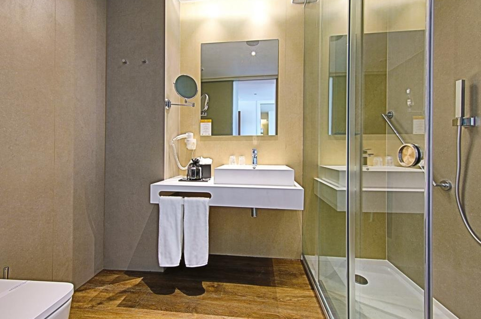 Dotari camere: Hotelul ofera camere decorate modern, cu aer conditionat, TV, telefon, seif, facilitati pentru prepararea de ceai si capsule de cafea gratuite, minibar, internet Wi-Fi, balcon cu masa si scaune. Baia privata este dotata cu dus, uscator de par si articole de toaleta gratuite.