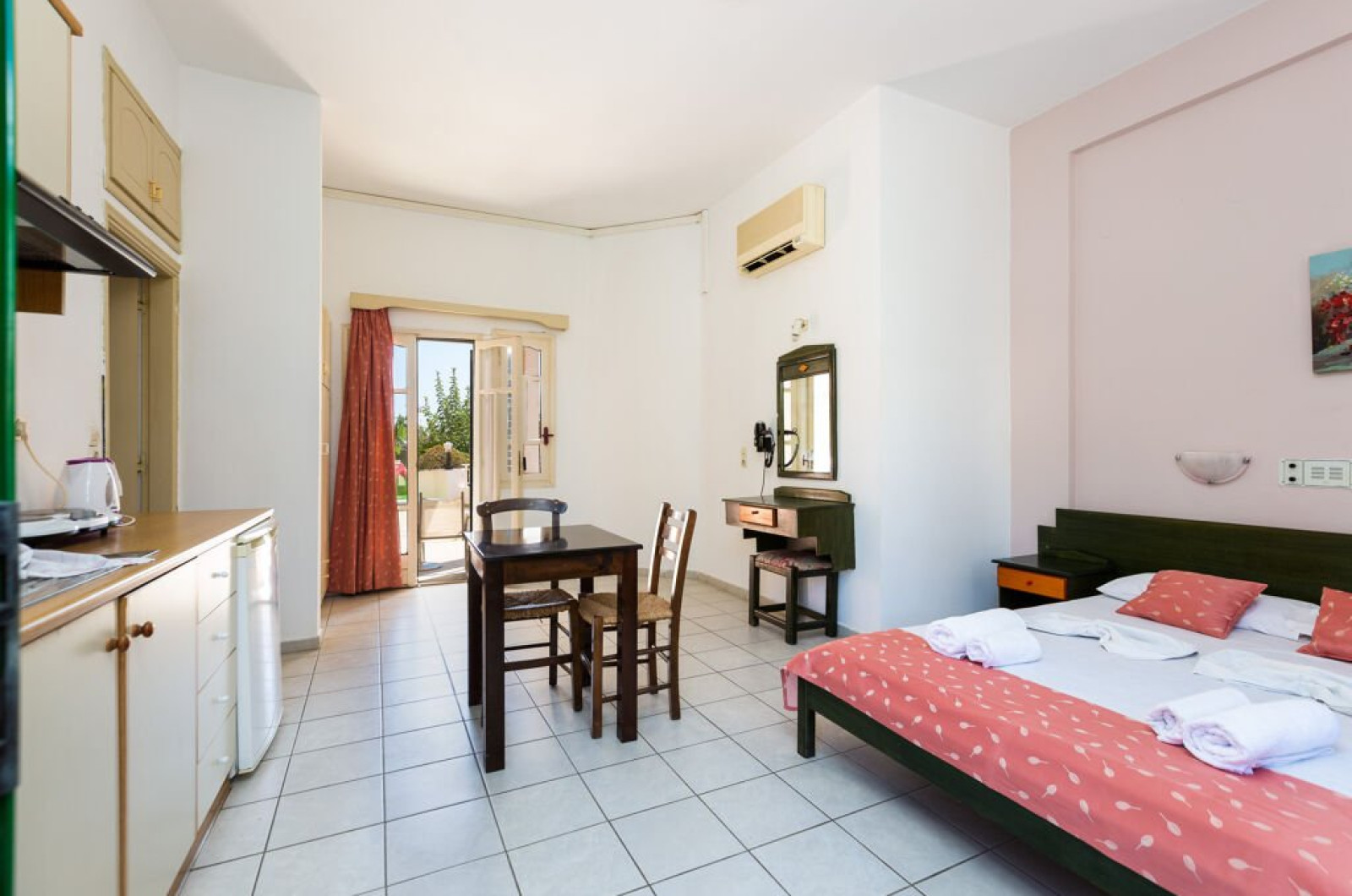 Dotari camere: Ormos Atalia Hotel are 4 tipuri de camera: camere standard, studiouri, apartemente si maisonette, toate dotate cu aer conditionat (contra cost), Wi-fi (contra cost), telefon, seif (contra cost), TV (contra cost), chicineta, frigider, baie privata, uscator de par, balcon.