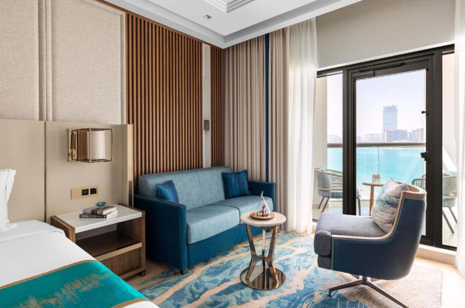 Camerele luminoase de la Taj Exotica Resort & Spa, The Palm Dubai sunt dotate cu parchet, aer condiționat, Tv cu canale prin satelit. Fiecare cameră dispune de un aparat pentru preparare cafea sau ceai, cană-fierbător și minibar. Oaspeții pot solicita serviciul de room service pentru a servi masa sau diverse băuturi. Oaspeții au acces gratuit la serviciul Wi-fi în camere. Camerele au balcon cu vedere la mare sau la piscină. În camere există baie cu cadă sau duș, foehn, articole de toaletă gratuite, precum și halate de baie și papuci. Curățenia in cameră se face zilnic. Proprietatea oferă camere pentru familie cu o suprafață mai mare și un număr mai mare de paturi față de cele standard.