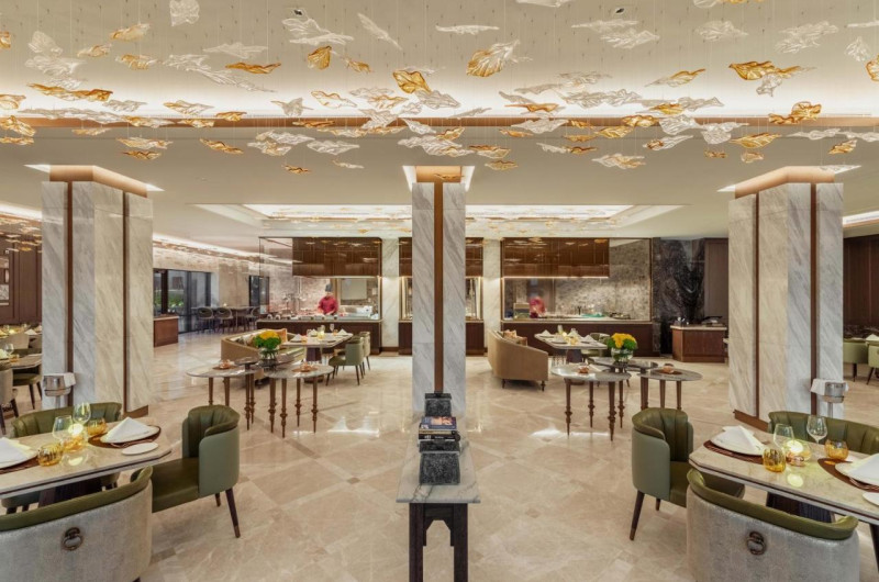 La Taj Exotica Resort & Spa, The Palm Dubai oaspeții au la dispoziție 5 restaurante unde pot savura mâncăruri delicioase, în stil bufet sau à la carte. Preparate din bucătăria internațională așteaptă să fie degustate în fiecare zi. Masa poate fi servită atât în interior, cît si în aer liber, pe terasă, în funcție de vreme. 3 baruri, unul la piscină, unul pe plajă și unul în lobby, sunt disponibile cu o ofertă variată de băuturi răcoritoare și alcoolice. Pentru cei cu anumite nevoi de nutriție, Taj Exotica Resort & Spa, The Palm Dubai oferă meniuri pentru diete speciale.