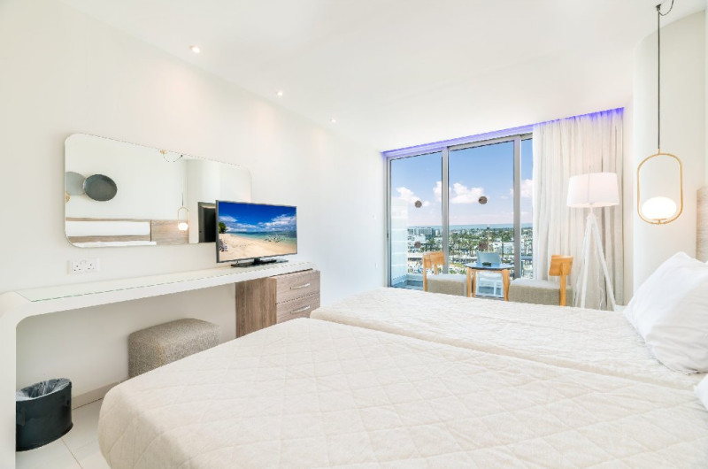 Dotari camera: Camerele elegante si moderne sunt decorate si mobilate cu gust. Fiecare camera este dotata cu aer conditionat si are incalzire centrala, cabina de dus cu efect de ploaie , , cutie de valori, facilitati pentru prepararea de ceai si cafea, mini-frigider, uscator de par si WIFI gratuit. Fiecare camera este dotata cu TV LCD cu ecran plat cu canale prin satelit. (Se poate aplica o taxa suplimentara pentru unele functii). Toate camerele au un balcon privat cu scaune si masuta de cafea, oferind vedere la gradina, vedere laterala la mare sau vedere completa (Sandy Bay).