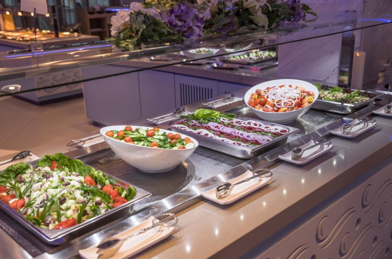 La Vassos Nissi Plage oaspeții au la dispoziție 2 restaurante unde pot savura mâncăruri delicioase, în stil bufet sau à la carte. Preparate din bucătăria internațională așteaptă să fie degustate în fiecare zi. Masa poate fi servită atât în interior, cît si în aer liber, pe terasă, în funcție de vreme. 2 baruri, dintre care unul la piscină, sunt disponibile cu o ofertă variată de băuturi răcoritoare și alcoolice. Pentru cei cu anumite nevoi de nutriție, Vassos Nissi Plage oferă meniuri pentru diete speciale.