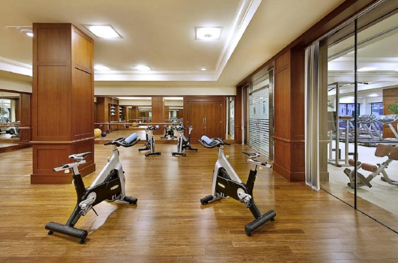 O sală de fitness cu echipamente necesare pentru o gamă variată de exerciții fizice este la dispoziția celor interesați.