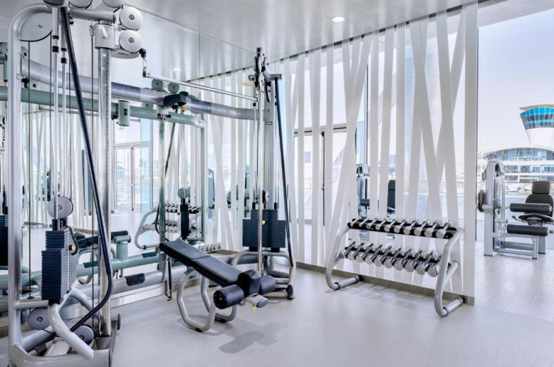O sală de fitness cu echipamente necesare pentru o gamă variată de exerciții fizice este la dispoziția celor interesați.
