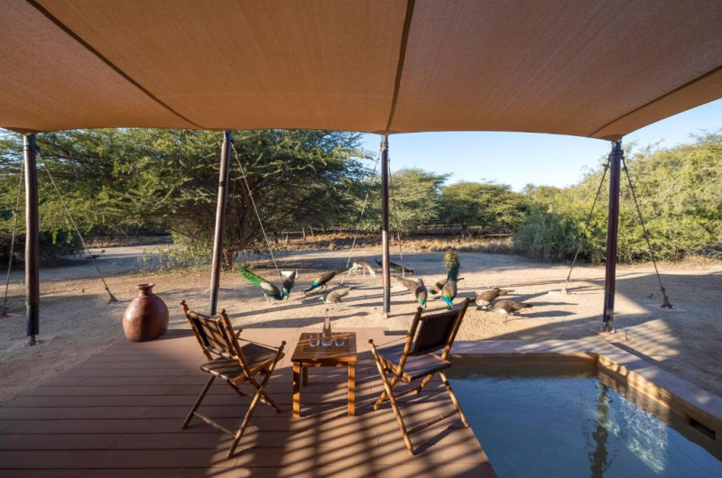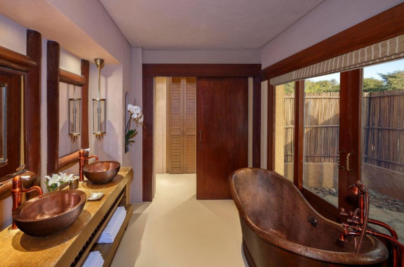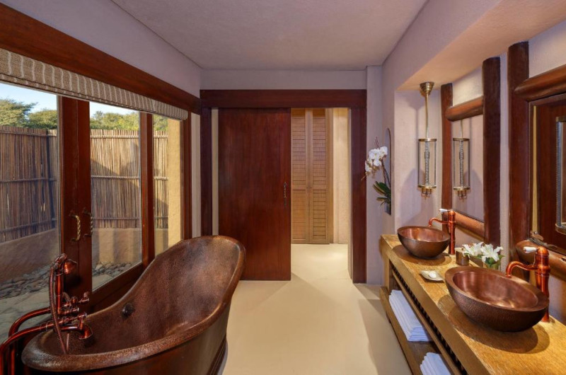 Furnished with an African décor, air-conditioned villas come with a minibar and a terrace. Private bathrooms include a bath, shower and free toiletries.
