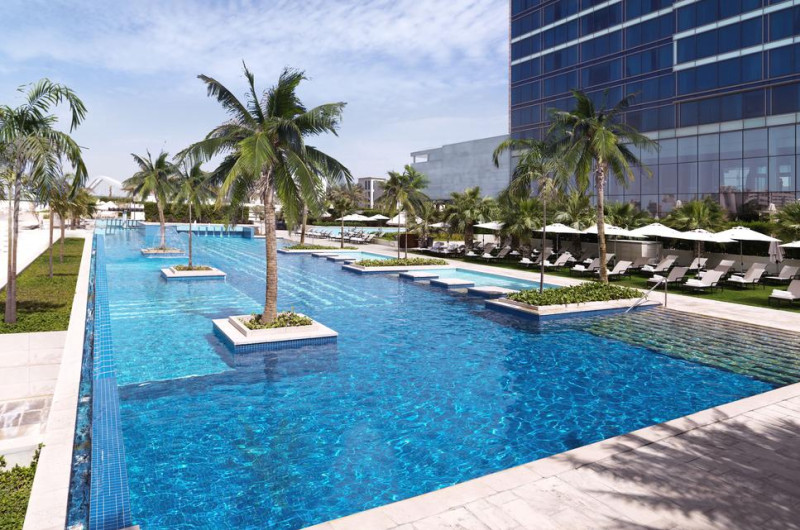 Cel mai apropiat aeroport este Aeroportul Al Bateen, situat la o distanță de 3,7 km. La cerere proprietatea organizează transfer la/de la aeroport contra cost.
