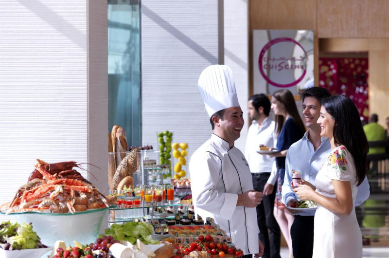 La Fairmont Bab Al Bahr oaspeții au la dispoziție 5 restaurante unde pot savura mâncăruri delicioase, în stil bufet sau à la carte. Preparate din bucătăria internațională și orientală așteaptă să fie degustate în fiecare zi. Masa poate fi servită atât în interior, cît si în aer liber, pe terasă, în funcție de vreme. Oaspeţii pot avea diverse băuturi răcoritoare sau alcoolice la bar. În cadrul proprietății există și o patiserie care servește diverse delicatese.