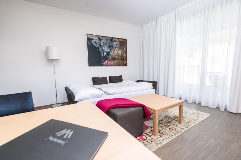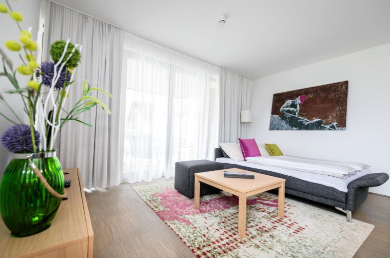 The aparthotel also has a spa and wellness centre, where guests can make the most of facilities like a sauna.