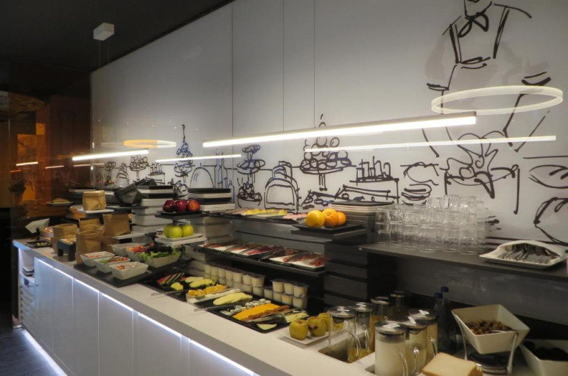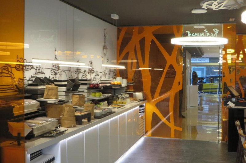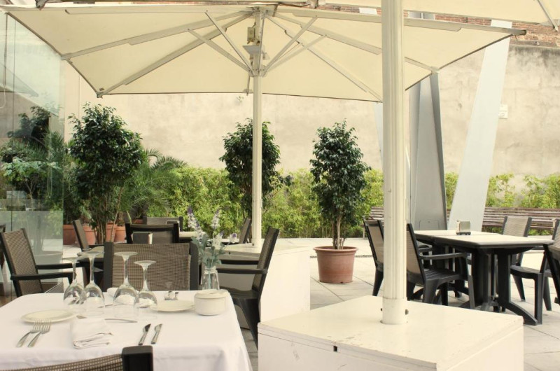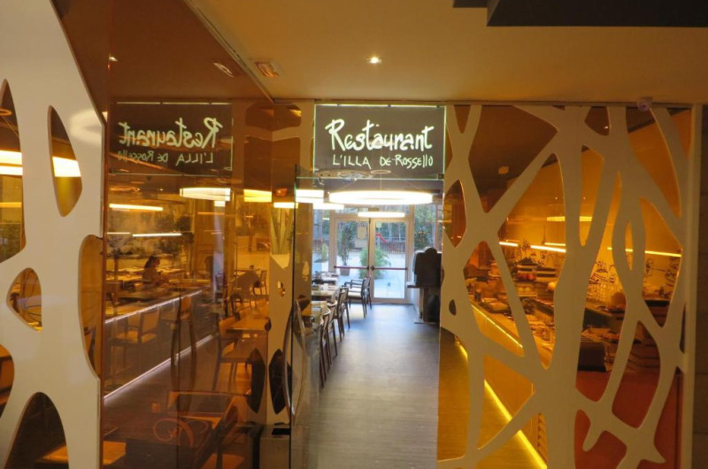 Restaurantul modern L'Illa del Rosselló servește preparate din bucătăria mediteraneană. De asemenea, oaspeții pot savura tapas pe terasa, amplasată in grădini mici numite Placeta Joan Brossa.