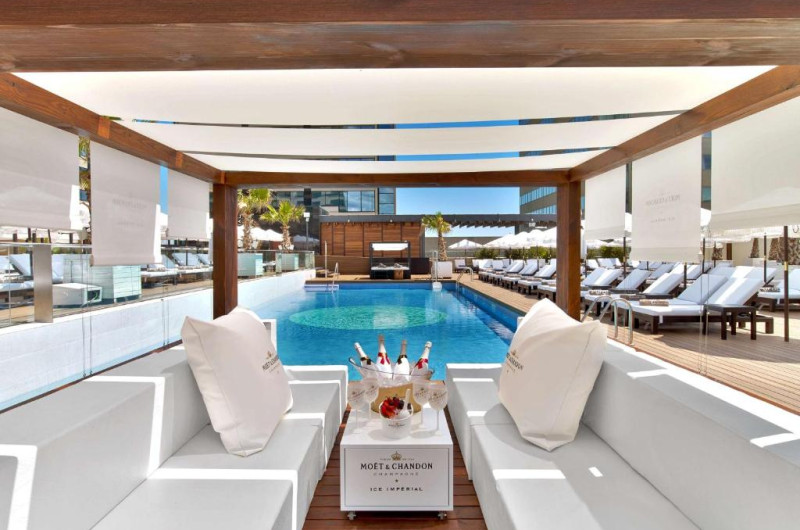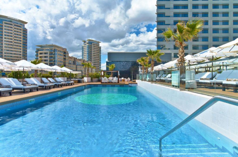 Terasa Purobeach Barcelona de la Hilton Diagonal Mar Barcelona are o zonă in aer liber și o zonă de mică adancime, disponibilă din aprilie pană in octombrie. Pentru toate facilitățile de pe terasa Purobeach, inclusiv paturile balineze, șezlongurile și serviciile de masaj, se percepe un cost suplimentar.