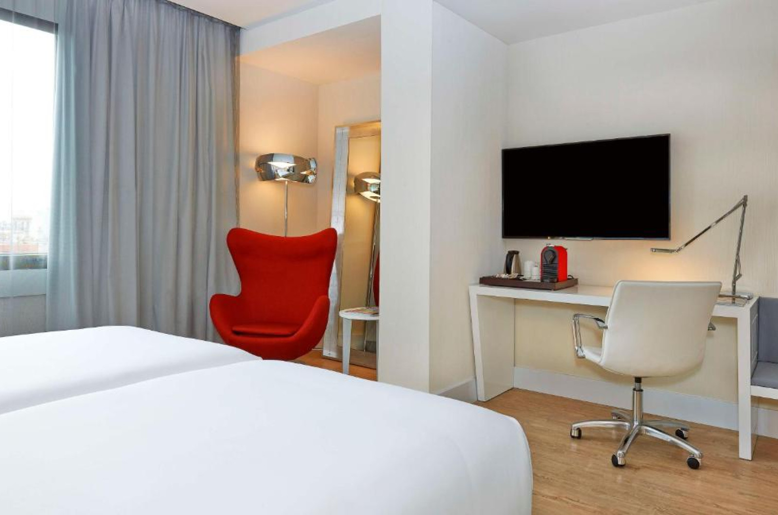 Camerele hotelului NH Collection Barcelona Gran Calderón au aer conditionat, WiFi gratuit, aparat de cafea Nespresso și baie privată cu duș cu efect de ploaie și uscător de păr profesional.