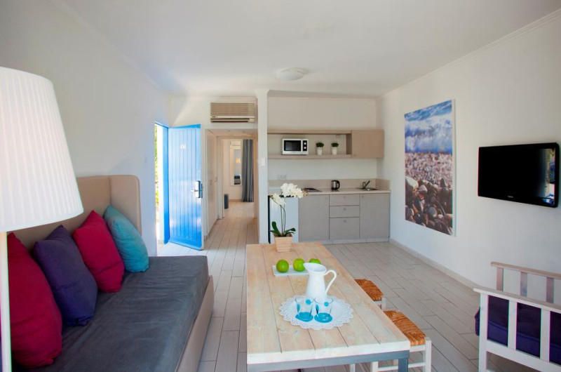 Sunt disponibile 189 camere. Fiecare cameră oferă cană-fierbător și mașină pentru prepare cafea sau ceai. Oaspeții pot solicita serviciul de room service pentru a servi masa sau diverse băuturi. În camere există baie cu cadă sau duș, foehn, articole de toaletă gratuite, precum și halate de baie și papuci. Camerele luminoase de la Aliathon Aegean sunt dotate cu gresie sau parchet, aer condiționat, Tv și seif. Unele camere au balcon cu vedere la grădină sau la piscină. Oaspeții au acces gratuit la serviciul Wi-fi în camere. Curățenia in cameră se face zilnic. Fiecare unitate de cazare include o chicinetă utilată cu frigider, plită de gătit și ustensile de bucătărie. De asemenea, sunt disponibile o zonă de luat masa și un cuptor cu microunde. Proprietatea oferă camere pentru familie cu o suprafață mai mare și un număr mai mare de paturi față de cele standard.