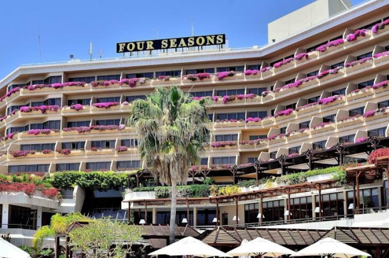 Hotel Four Seasons are 304 camere, dintre care 37 suite, incluzand Penthouse Suite, Family Suite, Family studio, camere cu vedere la mare sau interioara si de asemenea, Garden Studios rezervate doar pentru adulti. Toate camerele (renovate complet in 2005) sunt dotate cu bai luxoase, uscator de par, halate de baie, telefon, TV satelit, pay TV, play station, acces la internet, radio, mini bar, facilitati pentru prepararea cafelei si a ceaiului, sistem de monitorizare a bebelusilor, aer conditionat si balcon spatios.