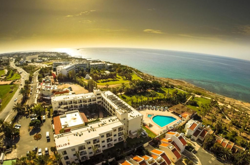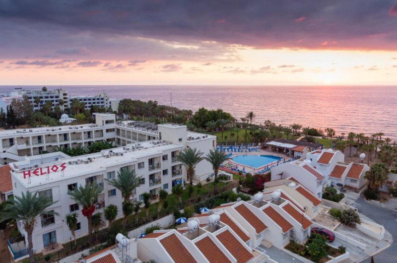 Situat intre Golful Coral si Pafos, hotelul Helios Bay se află la numai 100 de metri de plaja cu nisip. Hotelul include o piscină in aer liber cu bar, o sală de fitness si o saună. Orasul Pafos este la mai putin de 10 minute de mers cu taxiul.