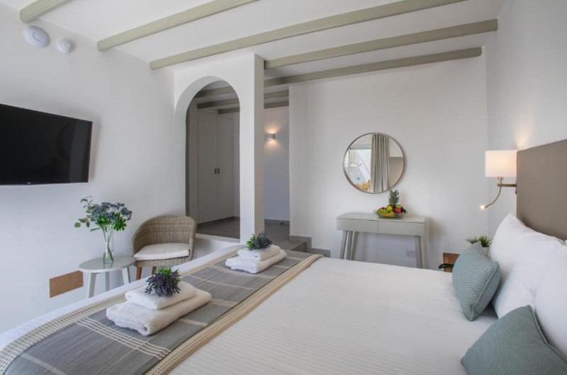 Camerele confortabile de la Leonardo Plaza Cypria Maris Beach Hotel & Spa au pardoseală de gresie/ marmură, aer condiționat, Tv cu canale prin satelit și seif. Fiecare cameră dispune de minibar și cană-fierbător. Oaspeții pot solicita serviciul de room service pentru a servi masa sau diverse băuturi. Camerele au balcon cu vedere la mare, la piscină sau la munte. În camere există baie cu cadă sau duș ce are în dotare foehn și articole de toaletă gratuite. Oaspeții au acces gratuit la serviciul Wi-fi în camere. Curățenia in cameră se face zilnic. Proprietatea oferă camere pentru nefumători.