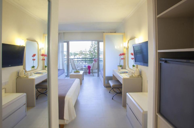 Camerele confortabile de la Louis Imperial Beach au pardoseală de gresie/ marmură, aer condiționat, Tv cu canale prin satelit și seif. Fiecare cameră dispune de minibar și cană-fierbător. Oaspeții pot solicita serviciul de room service pentru a servi masa sau diverse băuturi. Oaspeții au acces gratuit la serviciul Wi-fi în camere. În camere există baie cu cadă sau duș ce are în dotare foehn și articole de toaletă gratuite. Unele camere au balcon cu vedere la mare. Curățenia in cameră se face zilnic. Proprietatea oferă camere pentru familie cu o suprafață mai mare și un număr mai mare de paturi față de cele standard.