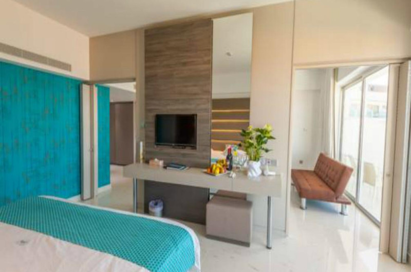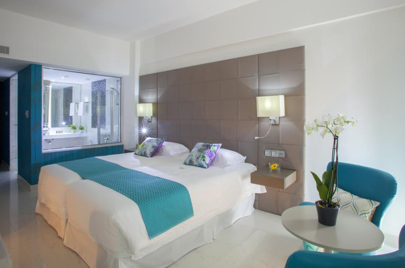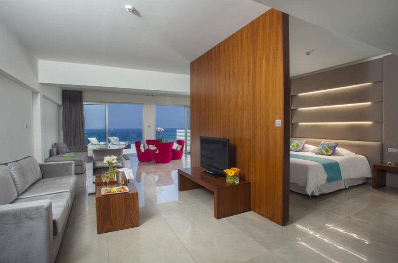 Unele camere au balcon cu vedere la mare sau la piscină. În camere există baie cu cadă sau duș, foehn, articole de toaletă gratuite, precum și halate de baie și papuci. Fiecare cameră dispune de minibar și cană-fierbător. Oaspeții pot solicita serviciul de room service pentru a servi masa sau diverse băuturi. Camerele confortabile de la King Evelthon Beach Hotel & Resort au pardoseală de gresie/ marmură, aer condiționat, Tv cu canale prin satelit și seif. Oaspeții au acces la serviciul Wi-fi în camere contra cost. Curățenia in cameră se face zilnic. Anumite camere au cadă cu hidromasaj care asigură un plus de confort și răsfăț. Proprietatea oferă camere pentru familie cu o suprafață mai mare și un număr mai mare de paturi față de cele standard.