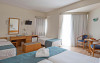 Avand deschidere spre un balcon cu vedere la piscină sau la uscat, toate camerele de la Kissos sunt dotate cu aer condiționat. Fiecare oferă TV cu canale prin satelit și un uscător de păr. Unele camere sunt construite de-a lungul piscinei in formă de lagună.