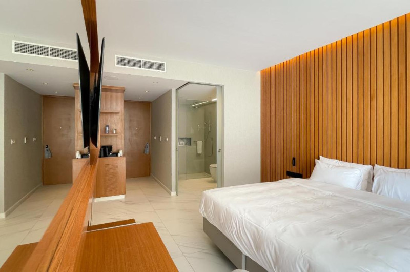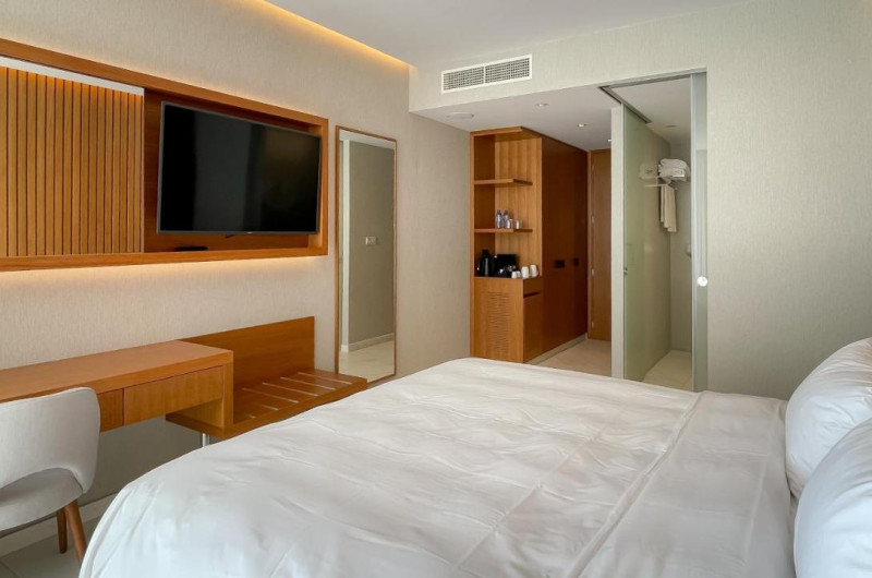 Camerele luminoase de la Radisson Beach Resort sunt dotate cu aer condiționat, Tv și seif. Fiecare cameră dispune de mașină pentru preparare cafea sau ceai, fierbător și minibar. Camerele au balcon cu vedere la mare sau la oraș. În camere există baie cu cadă sau duș ce are în dotare foehn și articole de toaletă gratuite. Oaspeții au acces gratuit la serviciul Wi-fi în camere. Curățenia in cameră se face zilnic.