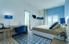 Toate camerele sunt spatioase si confortabile si sunt dotate cu aer conditionat, seif pentru laptop, minibar, TV LCD cu canale prin satelit si baie privată, prevăzută cu uscător de păr și articole de toaletă.